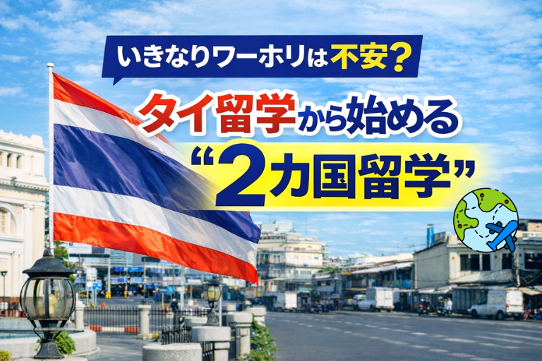この記事では、なぜ「いきなりワーホリ」が失敗しやすいのか、タイ留学を挟むメリット、2カ国留学からワーホリまでの流れをわかりやすく解説します。準備からしっかり進めたい方は、ぜひ参考にしてください。